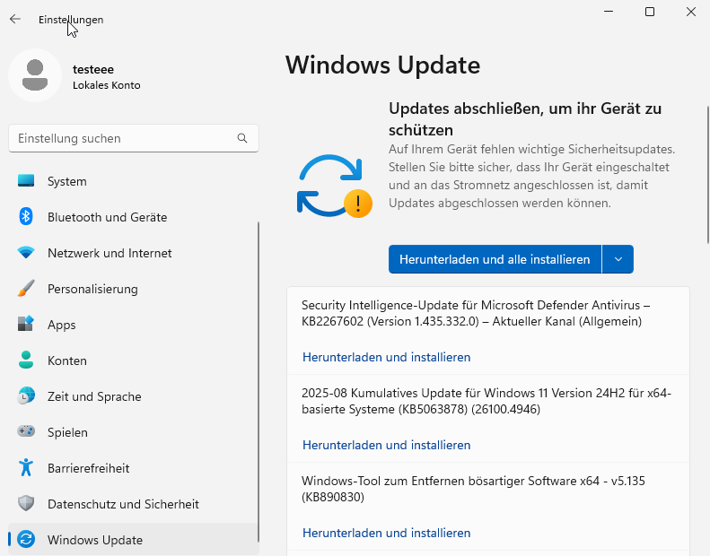 „Updates Suchen“ oder „Herunterladen und installieren“.