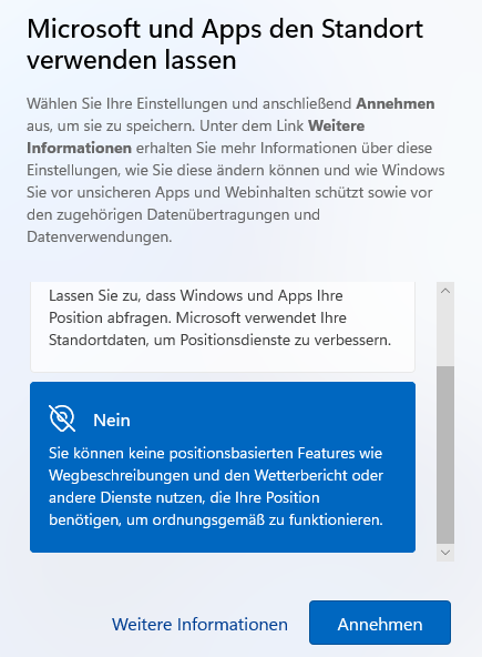 Wer den meisten Datenschutz haben will, wählt hier immer „Nein“ oder die unterste Option 😉
