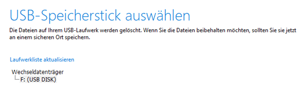 Vor den Start des Tools sollte der betreffende USB-Stick eingesteckt werden.