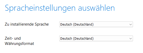 In der Konfiguration von Windows wird zuerst nach der Sprache und dem Tastaturlayout gefragt.